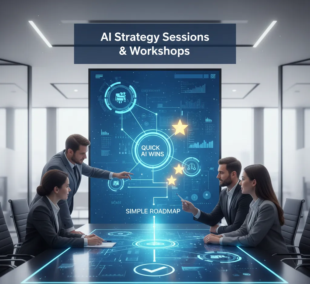 Done-with-you sessions where we map your processes, find quick AI wins, and design a simple roadmap your team can actually follow.