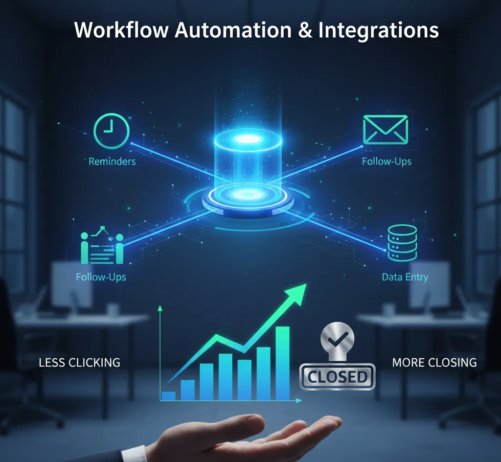 From reminders to follow-ups to data entry, we connect your tools so the boring steps happen in the background. Less clicking, more closing